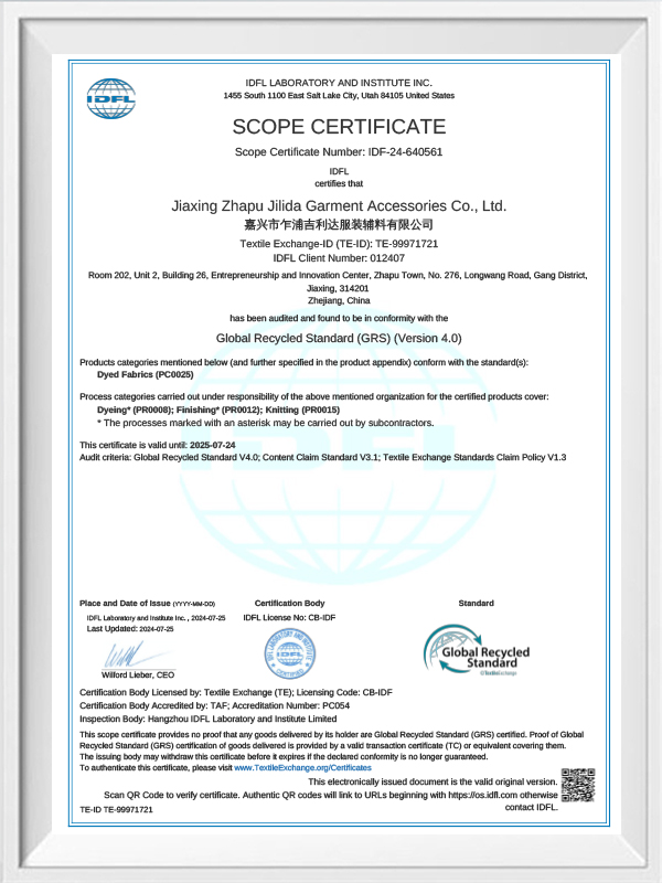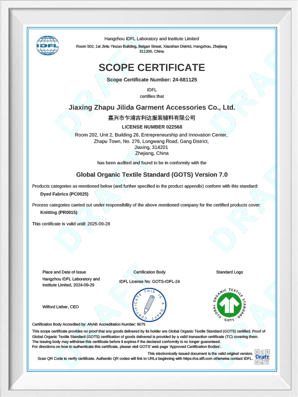 Jiaxing Zhapu Jilida Garment Accessories Co., Ltd. também se concentra na inovação tecnológica e no desenvolvimento de produtos. A empresa possui uma equipe profissional de P&D dedicada ao lançamento contínuo de novos tecidos e produtos para atender às novas necessidades do mercado. Este espírito de inovação contínua permitiu à Jilida manter sempre uma posição de liderança na acirrada competição do mercado.